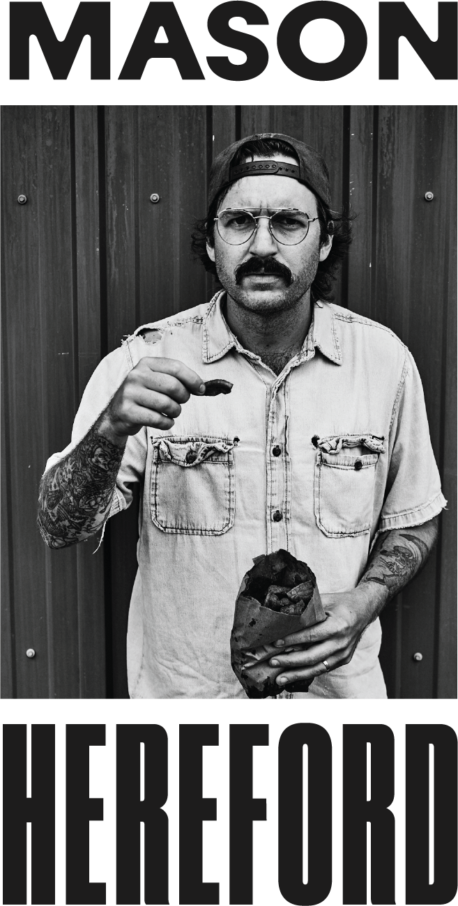 Mason Hereford es el chef y propietario de Turkey and the Wolf, un local de servicio exclusivo en el mostrador que Comida y vino y don catalogado como uno de los restaurantes más importantes de la década, y Buen provecho nombrado Mejor Restaurante Nuevo en Estados Unidos en 2017. También es dueño de Molly's Rise and Shine, un lugar para desayunar cercano que Comida y vino nombrado uno de los diez mejores restaurantes nuevos de Estados Unidos en 2020. Su libro de cocina, Turquía y el lobo: Sabor Trippin 'en Nueva Orleans, se convirtió en un New York Times Bestseller, después del primer envío pasó meses perdido en el mar. Mason, el restaurante Turkey and the Wolf, el libro de cocina y sus co-chefs en Molly's Rise and Shine, que recientemente se unieron a él como socios, han engañado por separado a la Fundación James Beard y han recibido nominaciones a premios. Recientemente se asoció con el co-chef de Turkey and the Wolf, Philip Cenac, y su maravillosa esposa, Lauren Agudo, para abrir un nuevo restaurante llamado Hungry Eyes. Sirven comida de lujo para beber, vinos naturales refrescantes y martinis manchados de lápiz labial en un pequeño lugar en Magazine Street en Nueva Orleans que parece un club nocturno y un salón de uñas de los 80 que tuvieron un hijo amado. Todavía es nuevo, por lo que adquiere un poco más de brillo aquí en la biografía. Mason nació y creció patinando y comiendo comida de gasolinera en la zona rural de Virginia. Una vez apareció en un comercial de mayonesa que todavía se reproduce en la televisión. Conoce a Guy Fieri y Jennifer Coolidge. Actualmente vive en Nueva Orleans y nunca se irá.